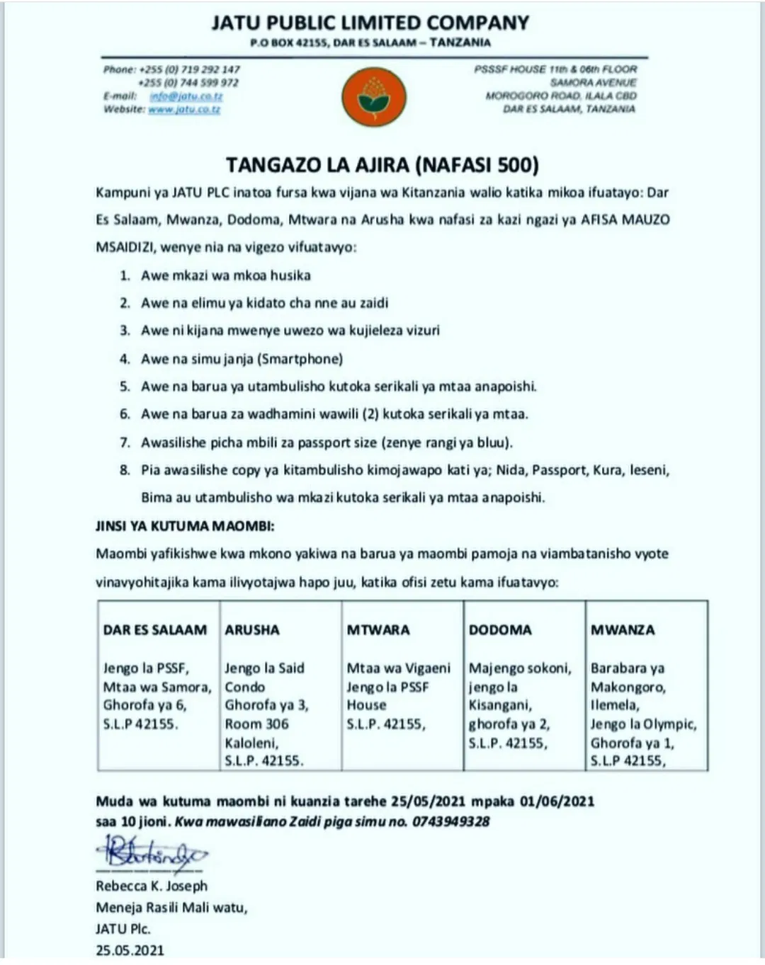 JATU PLC(Jenga Afya Tokomeza Umasikini) is a Tanzanian company registered as a Public Limited Company that connects farmers and enables them to cultivate modern and post-harvest companies. network marketing (network marketing).